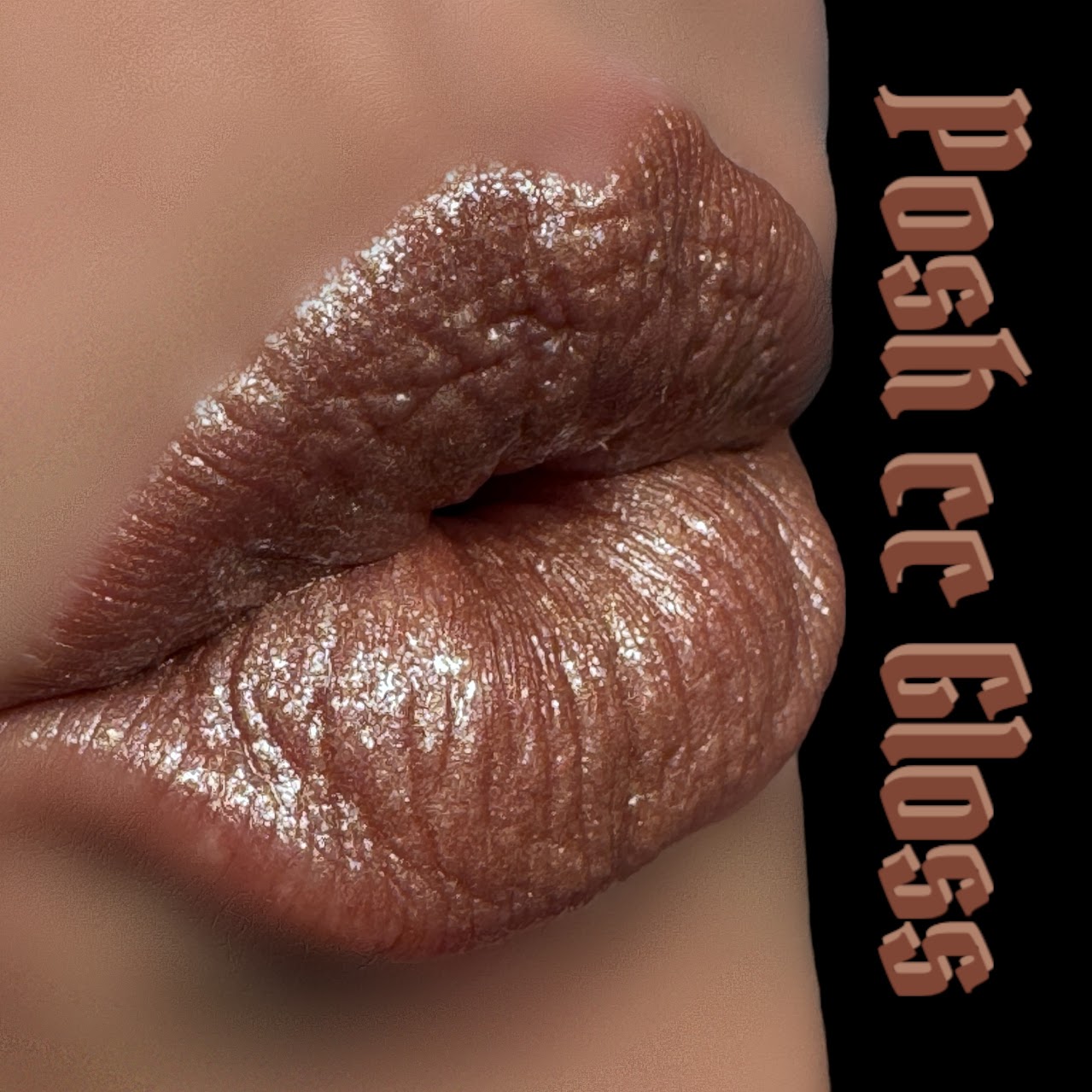Posh by Lawrence Customs is a nude brown with champagne shimmer subtle diamond sparkles. She was created with a sister gloss that is color compatible adding extra pigmentation and shimmer.